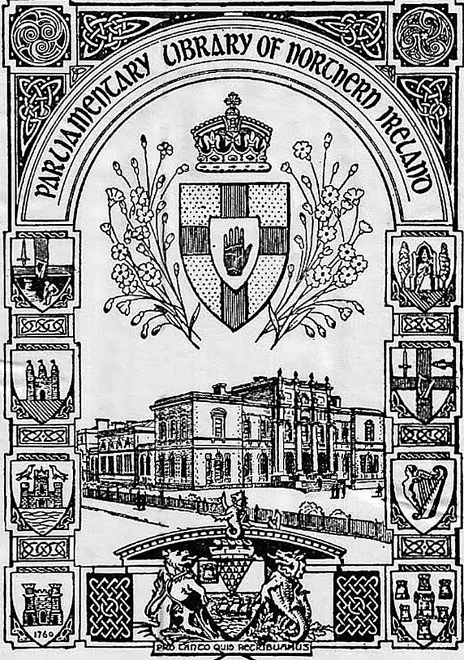 Even post-partition, the unionist government of the new six-county state were very comfortable in using celtic regalia for their governmental crests and plaques, such as this design for the Parliamentary Library of Northern Ireland: